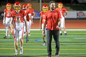 Casey Shine, interim head football coach at Chapman University, directs the Panthers. (Photo courtesy...