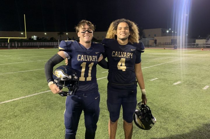 Jett Rauch (left) and Waldo Castrejon led Calvary Chapel to a victory Thursday night....