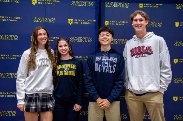 Crean Lutheran students who signed Wednesday were (from left) Olivia Viola, Hayli McIIlroy, Cole...