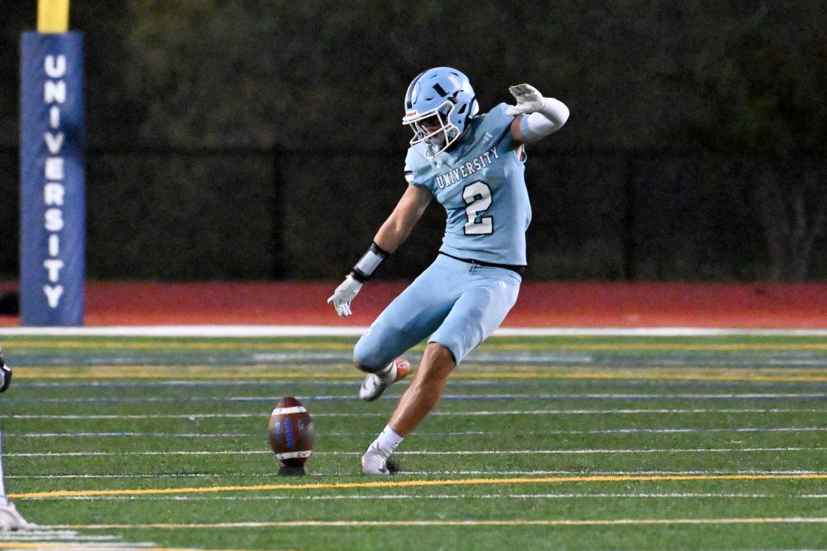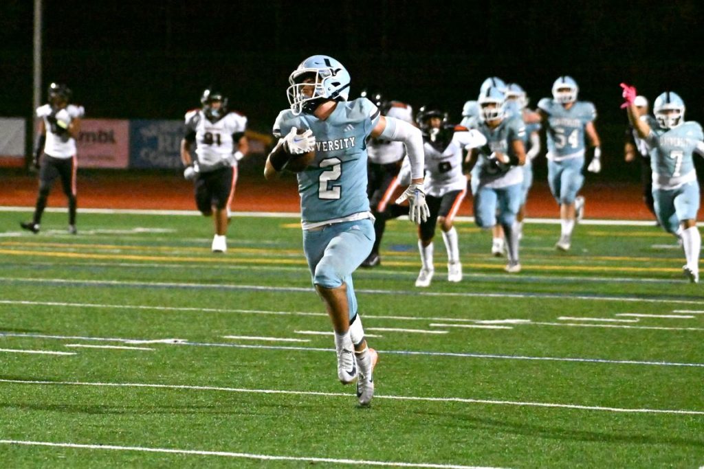 University’s Jake Rabold heads toward the end zone in the game vs. Los Amigos. (Photos courtesy Allen Berezovsky).