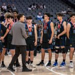 Beckman third base Coach Doug Ireland celebrates with his son Zach after a CIF...