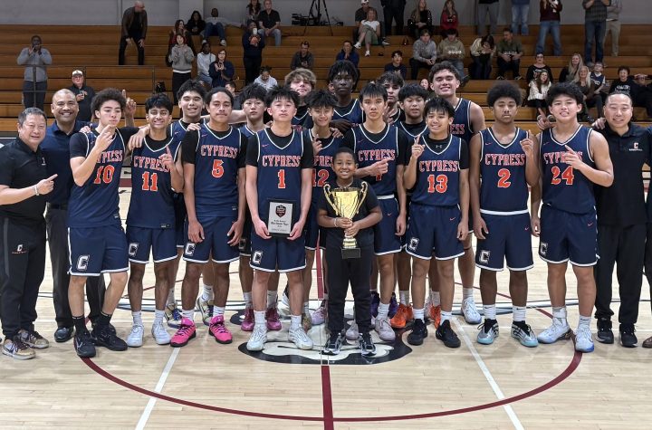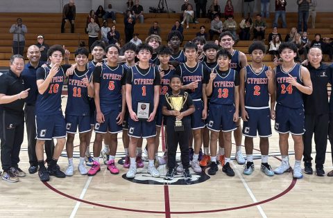Portola players are joined (far left) by player development coach Miles Song, former Servite...