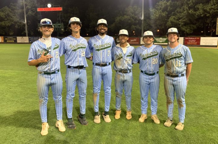 Cypress players (from left) Noah Johnson, Nick Montgomery, Jake De Laquil, Justin Tillar and...