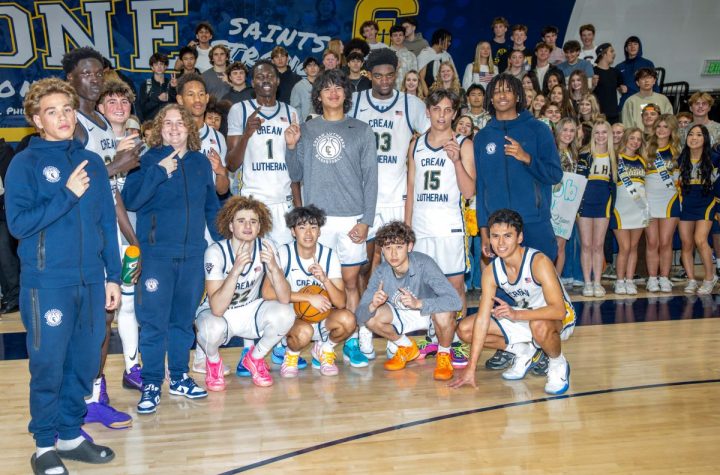 Orange Lutheran players and coaches celebrate after the Lancers won the CIF title Saturday.(Photos:...