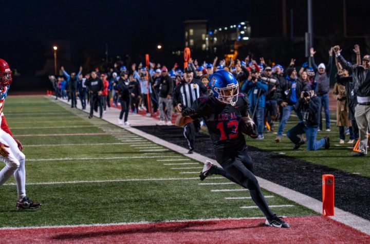 KJ Carr of Los Alamitos celebrates after the Griffins won the championship at the...
