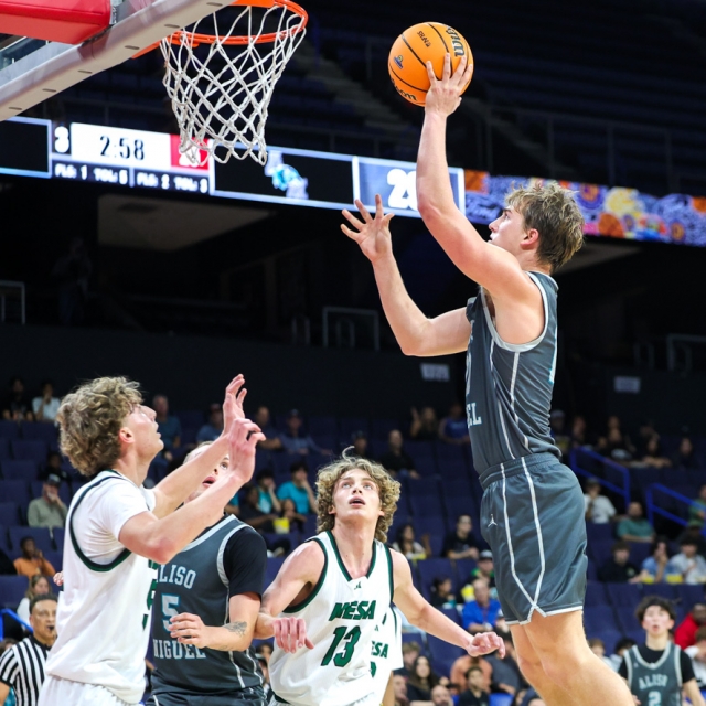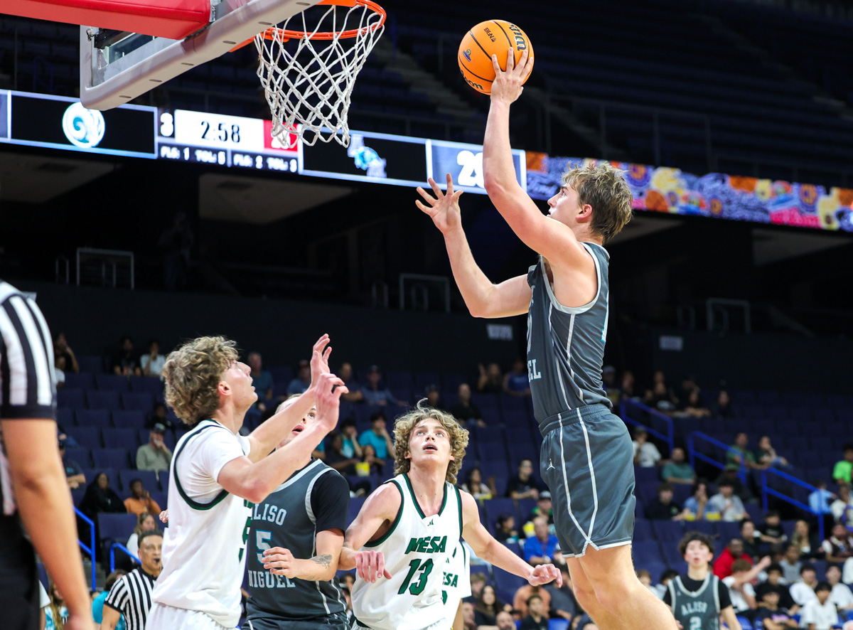 Murrieta Mesa led 38-22 at halftime but Aliso Niguel (24-9) made a run in the fourth quarter cutting the lead seven points on two free throws by Miles Iribarne with 2:38 left. But that was as close as the Wolverines could get;