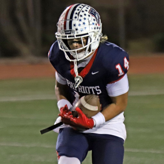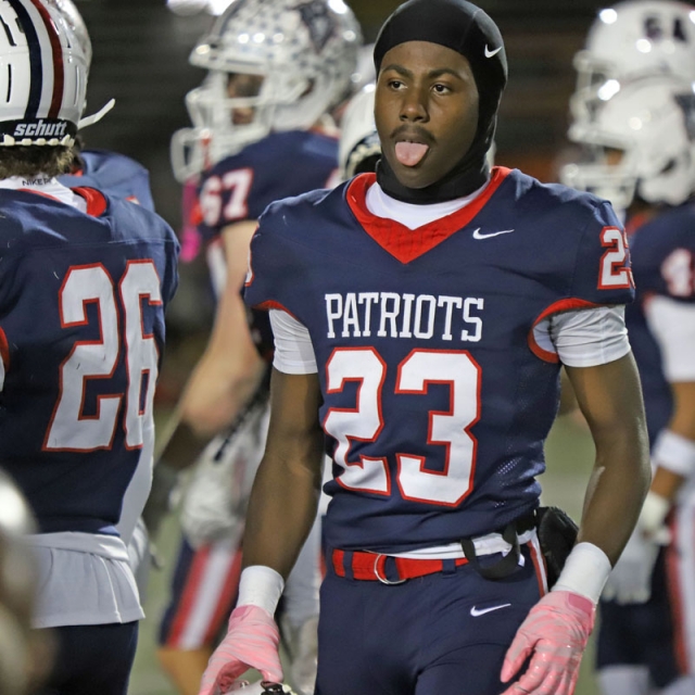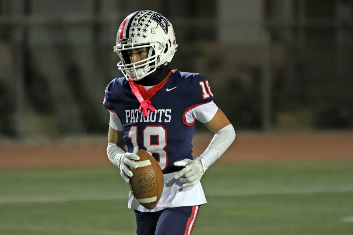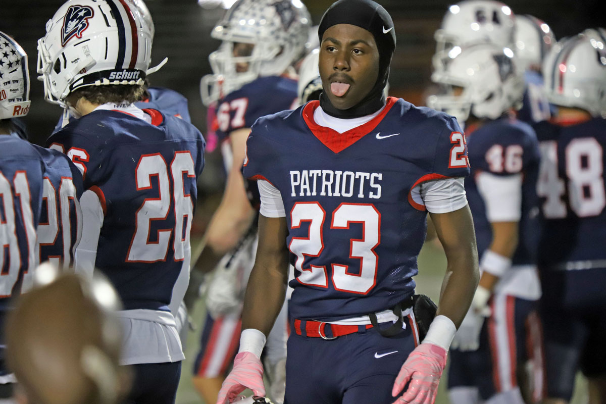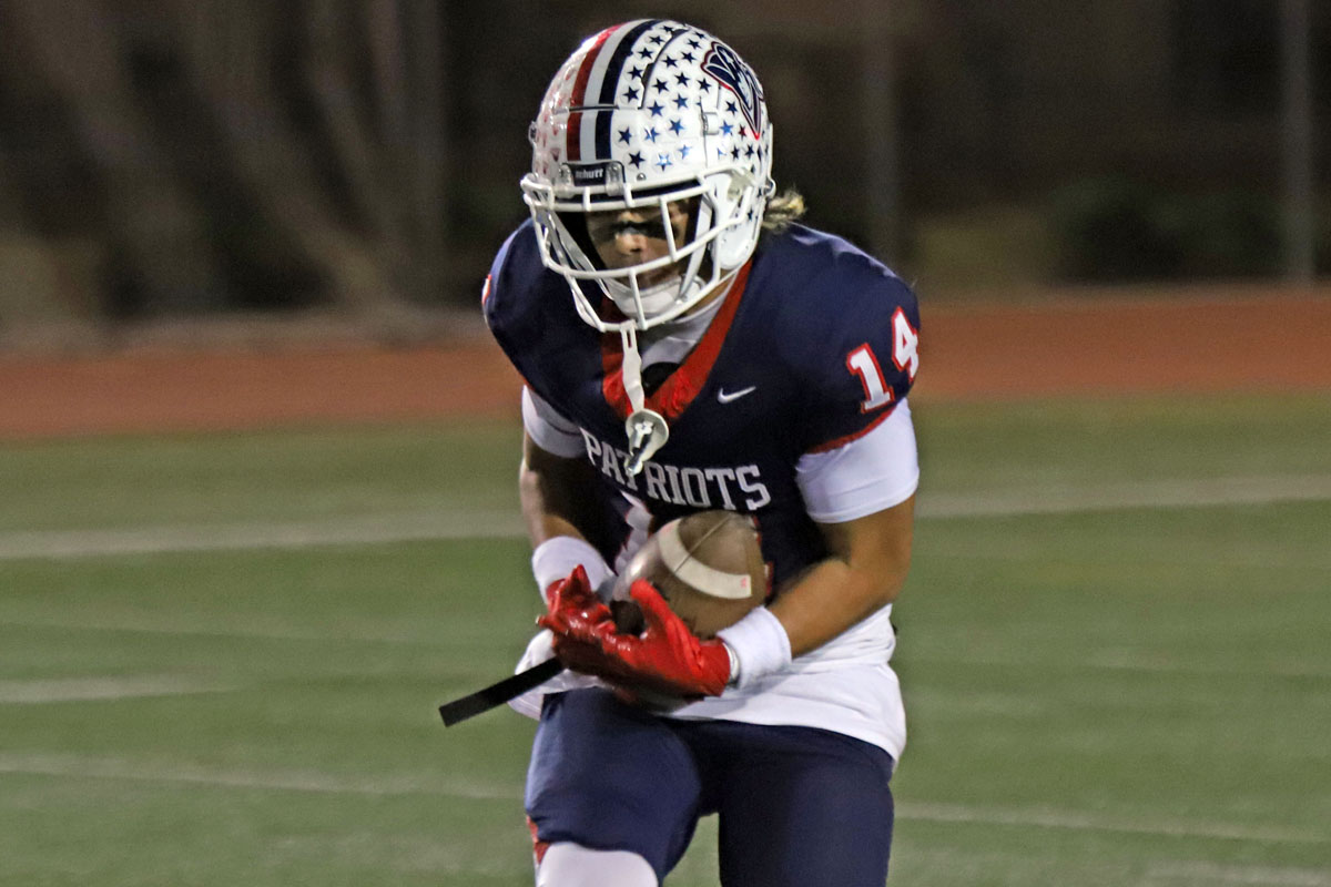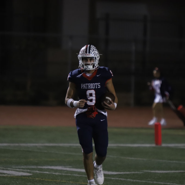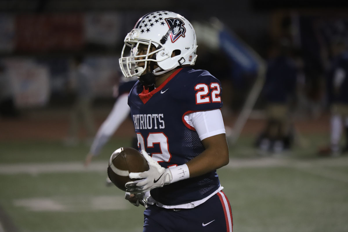 Beckman players led by team captain Makhi Czaykowski warm up before Saturday night’s CIF State Division 4-A South Regional Final against Hillcrest at Northrup Field. (PHOTOS: Fernando M. Donado, For OC Sports Zone).