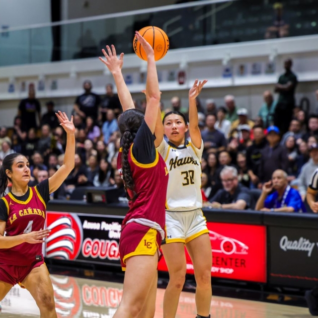 The Golden Hawks played an aggressive defense and held La Canada to one basket (on 1-17 shooting) in the first quarter and led 9-3 after the first period.