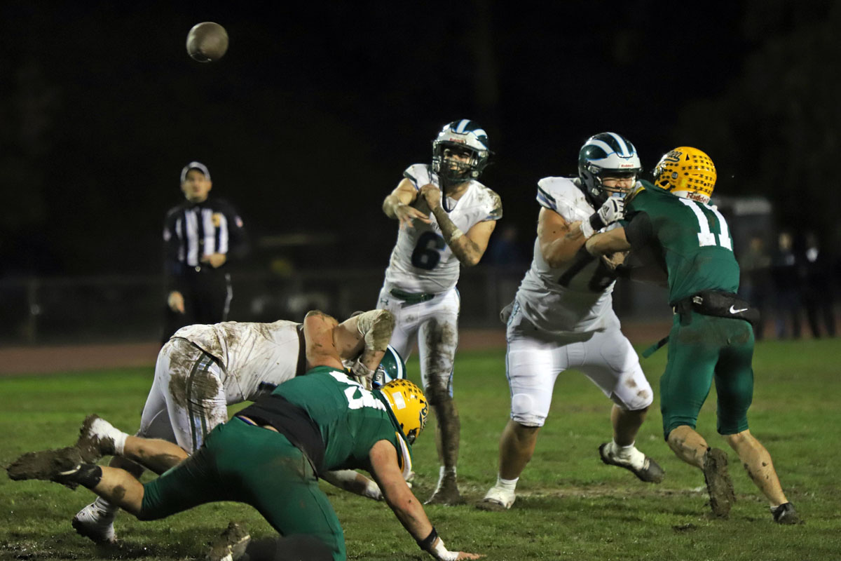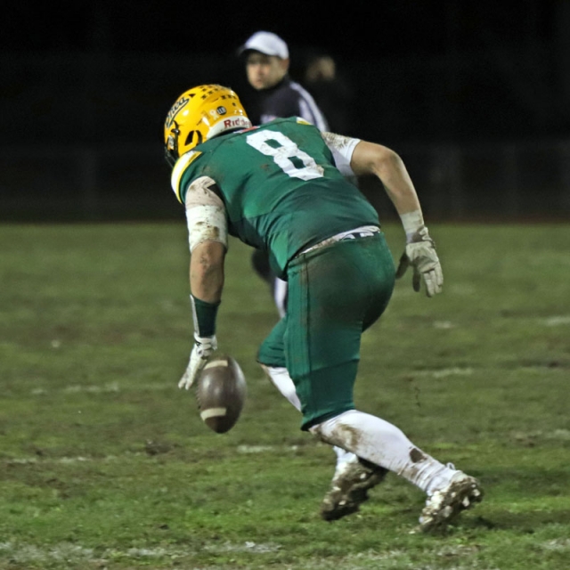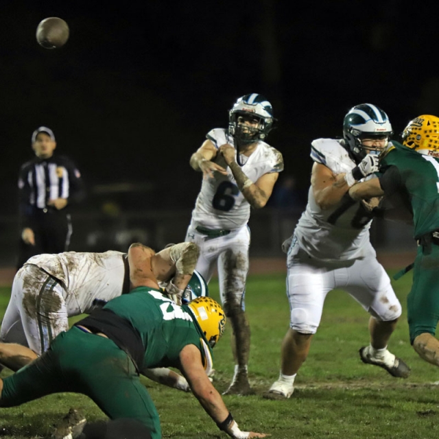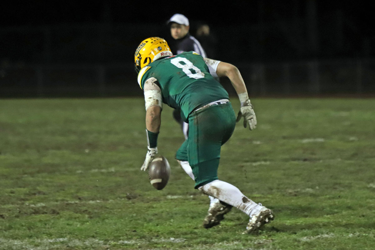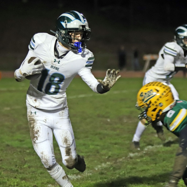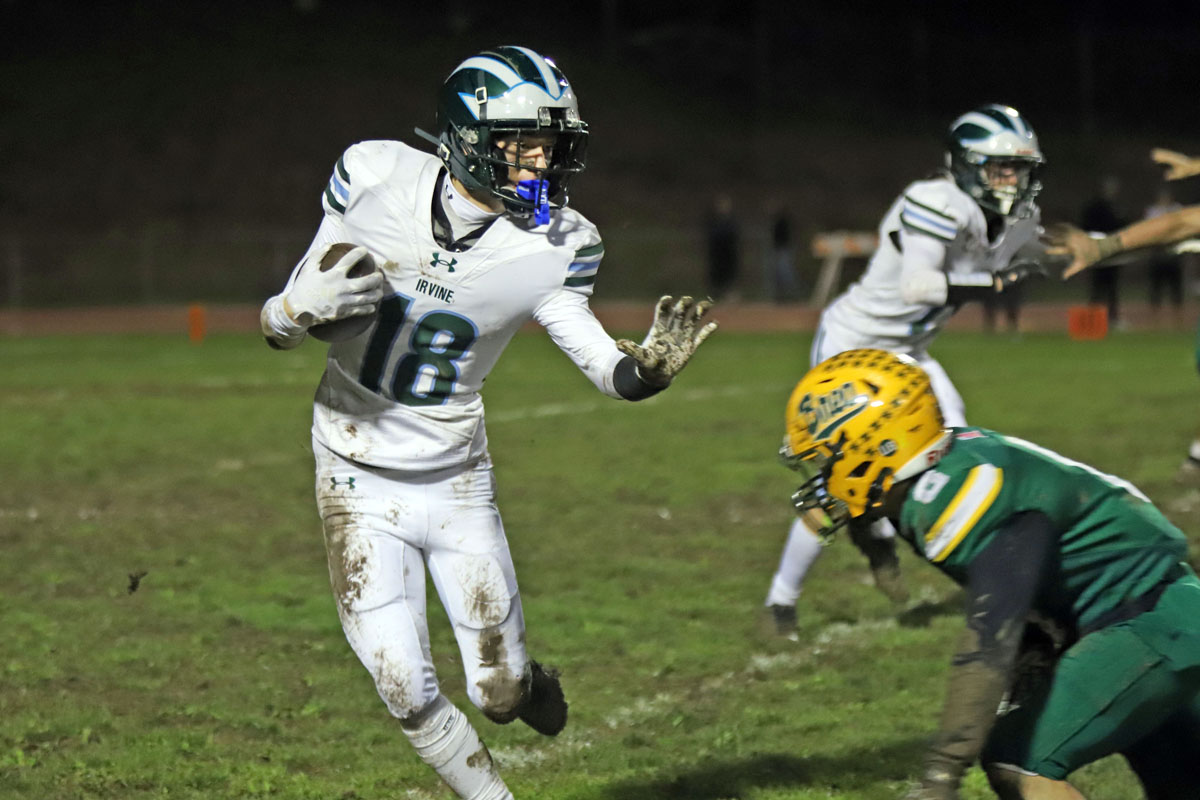 On the Vaqueros next possession, Irvine committed its second turnover that proved costly. Saferrzadeh pitched the ball to Jayden Heo, however Heo slipped into the deep mud and the ball hit off his helmet and was nearly caught in midair by Chris Bradish who pounced on the loose ball at the Vaqueros’ 36-yard line.