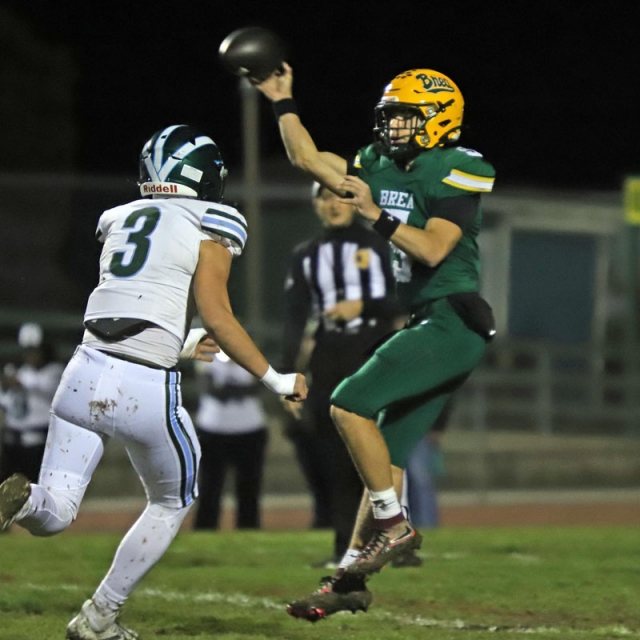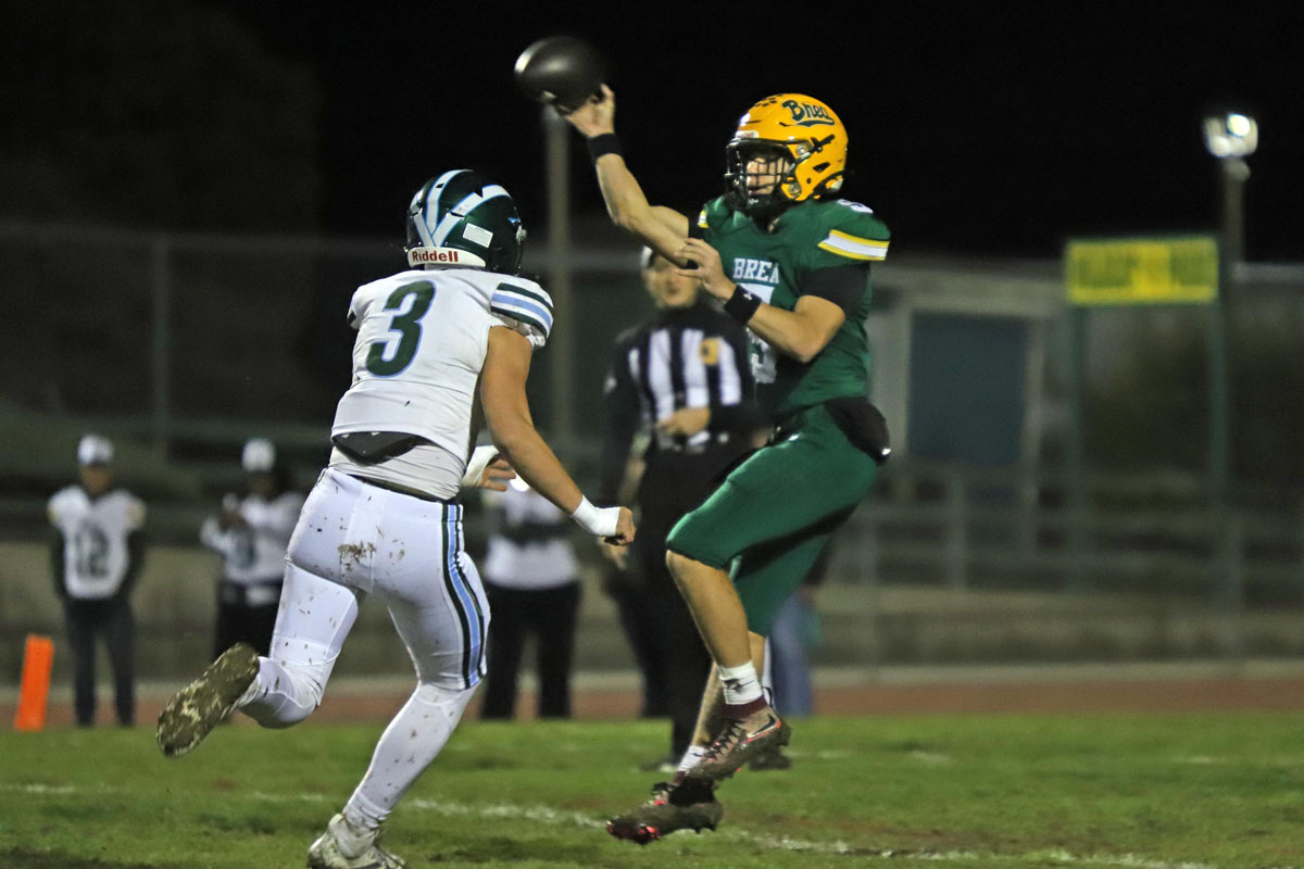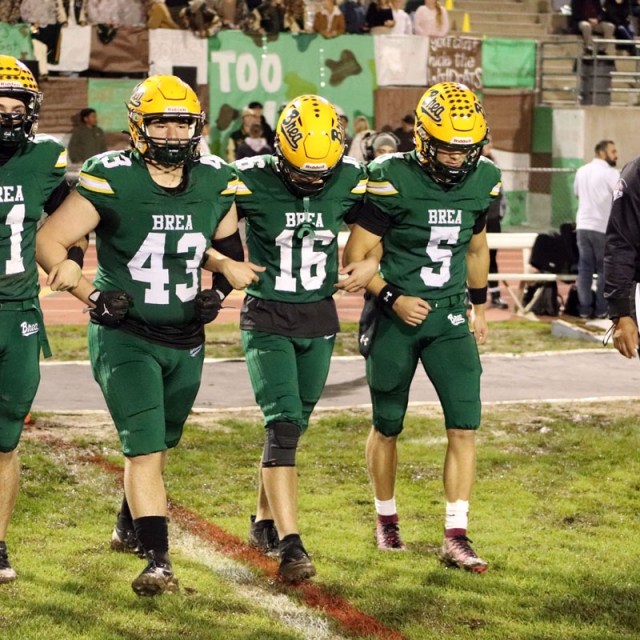“We’ve been a tough physical football team all season,” said Villasenor, who has been coaching at Brea Olinda for 17 years. “I figured whoever kept their footing would win. We capitalized on their mistakes and I’m really happy for several of our coaches who played on the Brea team that went to the 2018 championship game. I’ve been waiting to practice on Thanksgiving ever since I was a player; it’s exciting.”
