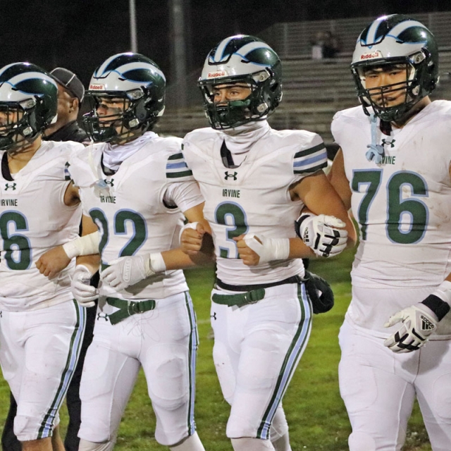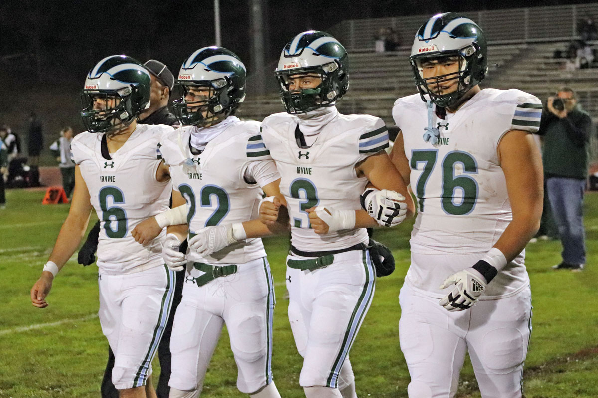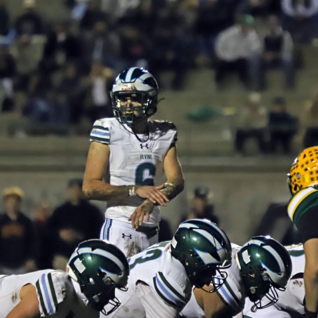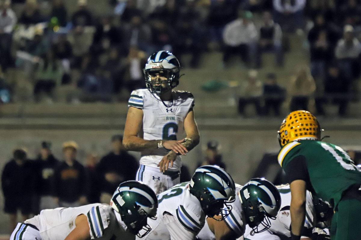 The game started out strong for Irvine as the Vaqueros (9-4) broke on top in the opening quarter by marching 45 yards in seven plays for a score. Quarterback Sina Saferzadeh capped the drive with a 6-yard TD run. The Vaqueros missed the PAT but led 6-0.