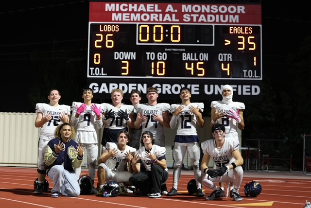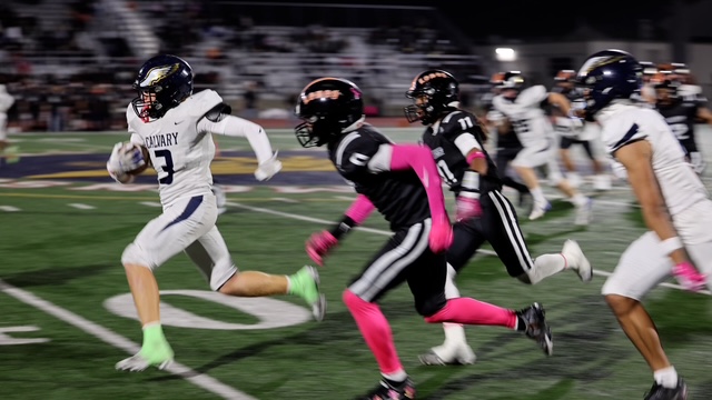 Calvary Chapel’s football team completed an undefeated regular season defeating Los Amigos 35-26 Thursday night in the Sigma League finale at Garden Grove.