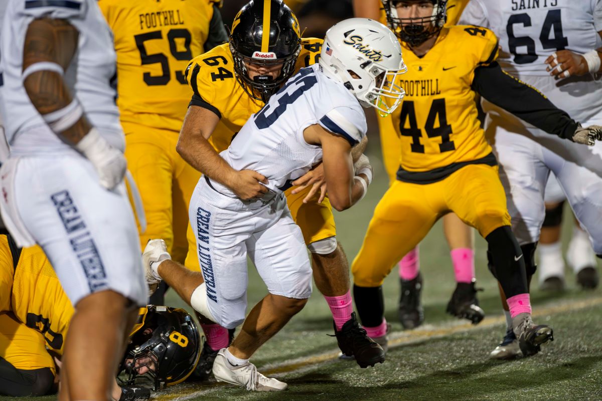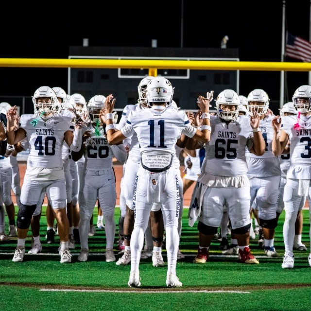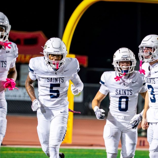 “The first defense held the Knights scoreless as Aaron Nicasio (nine tackles and two tackles for a loss) was all over the field for the Saints,” Curtis said. “Defensive lineman Anthony Jones, was solid against the run and pressured the Foothill quarterback throughout the evening. Aiden Smith led the Saints secondary with three solo tackles and help shut down the Foothill passing attack.”