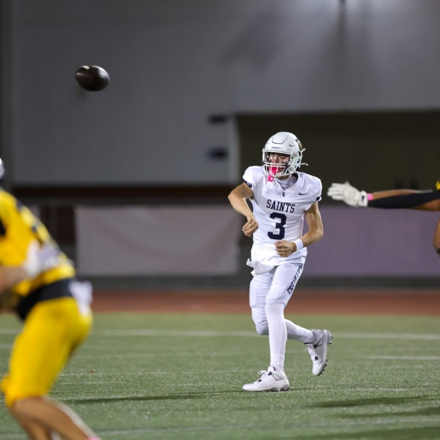 Saints quarterback Caden Jones completed 19 of 23 passes for 370 yards and four touchdown passes. Jones’ touchdown passes were to Ty Johnson (two), Luca Amaya and Damari Hall.