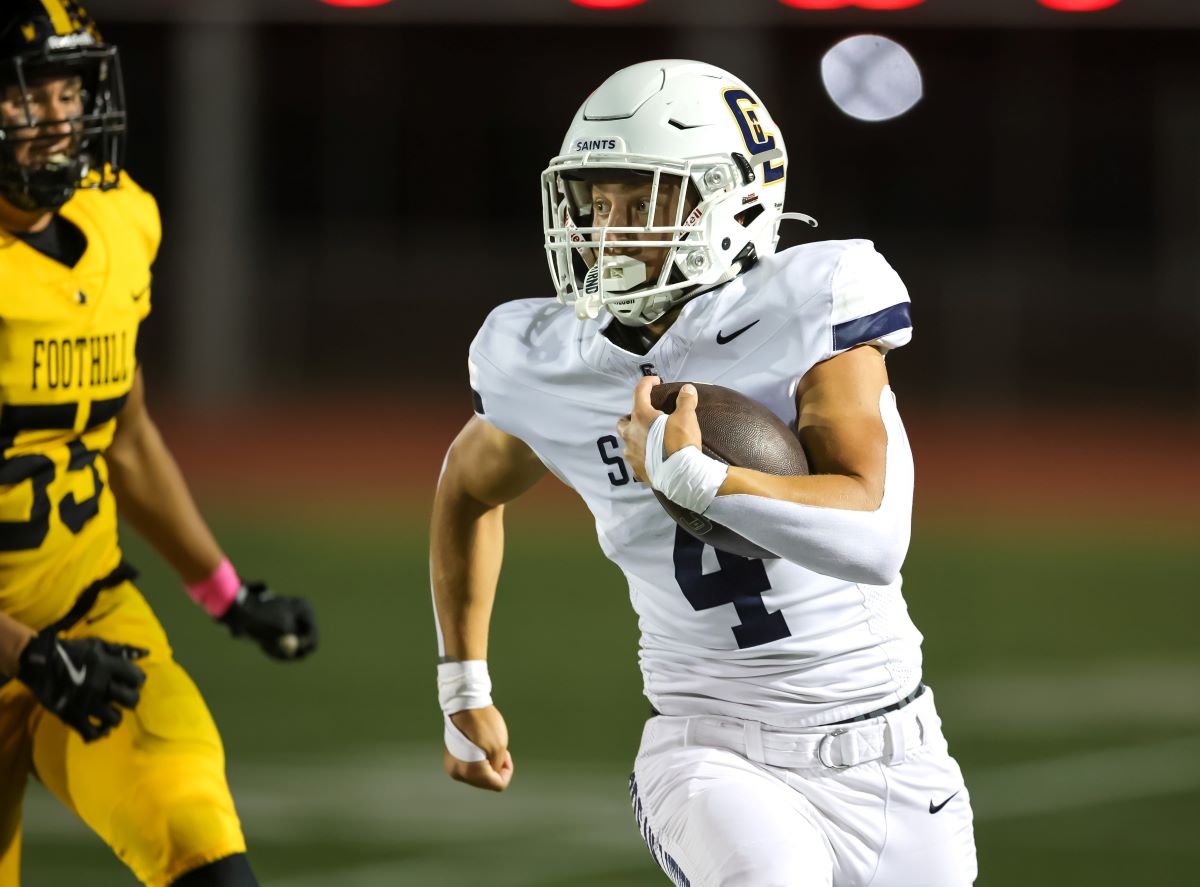 Lucas Wong scored from 15 yards out on a quarterback keeper in the fourth quarter to close out the scoring for Crean Lutheran (6-0, 1-0). Dillon Booth (five receptions, 90 yards) and Bryce Coleman (five receptions, 99 yards) were the Saints top receivers.