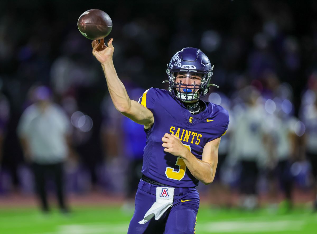 Jones completed 19 of 22 passes for 321 yards and five touchdowns to help the Saints (8-0, 3-0) remain tied with Huntington Beach (7-1, 3-0) for the league lead.