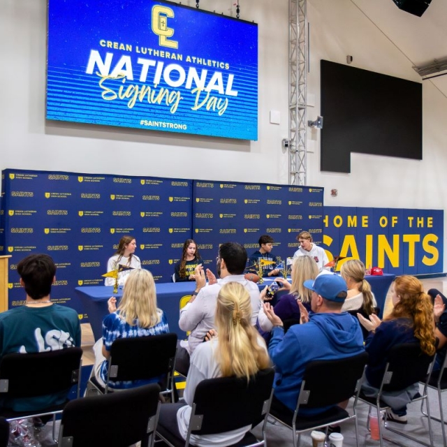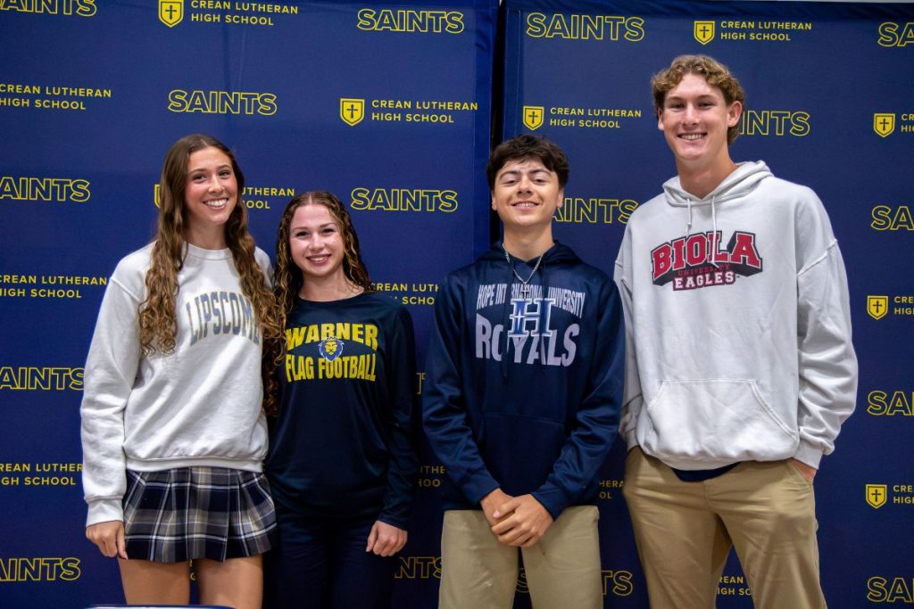 Four Crean Lutheran High School athletes who signed their college letters were honored Wednesday during a ceremony on campus.