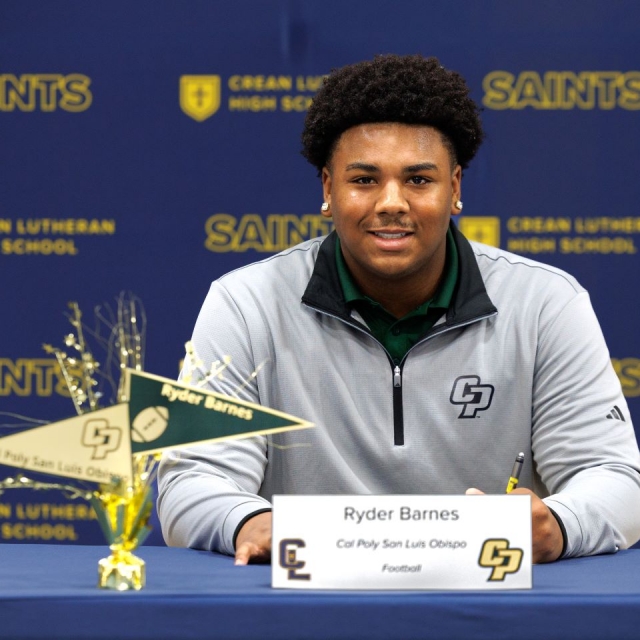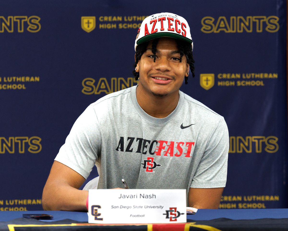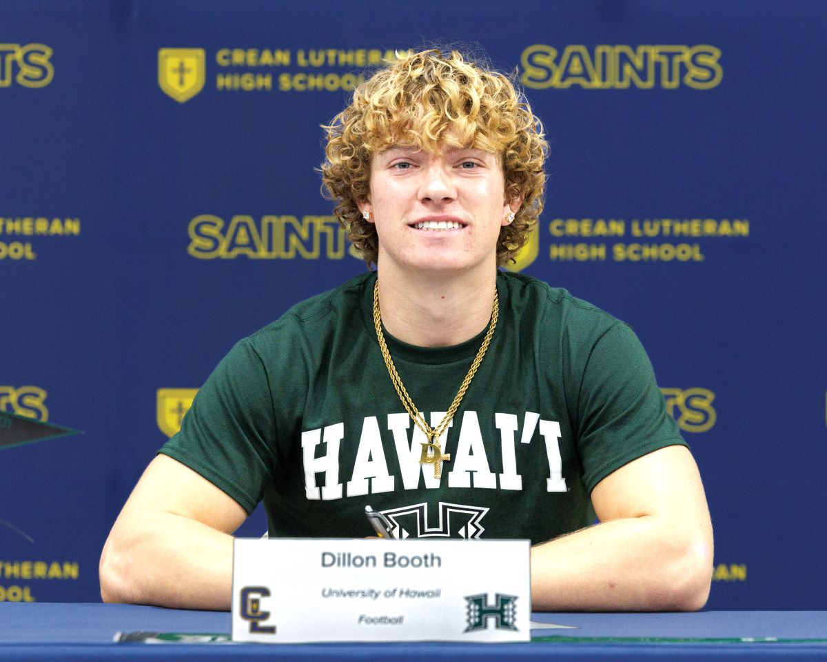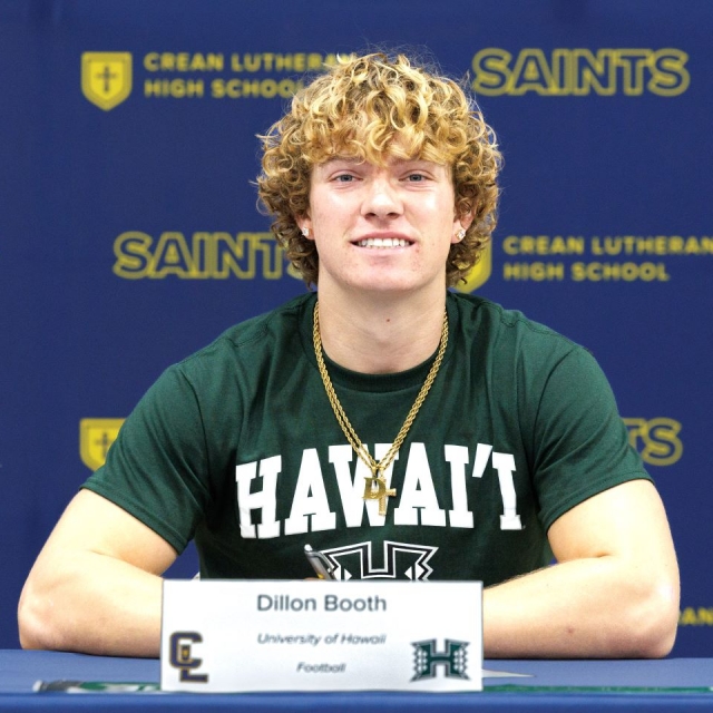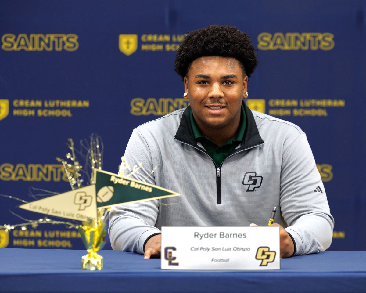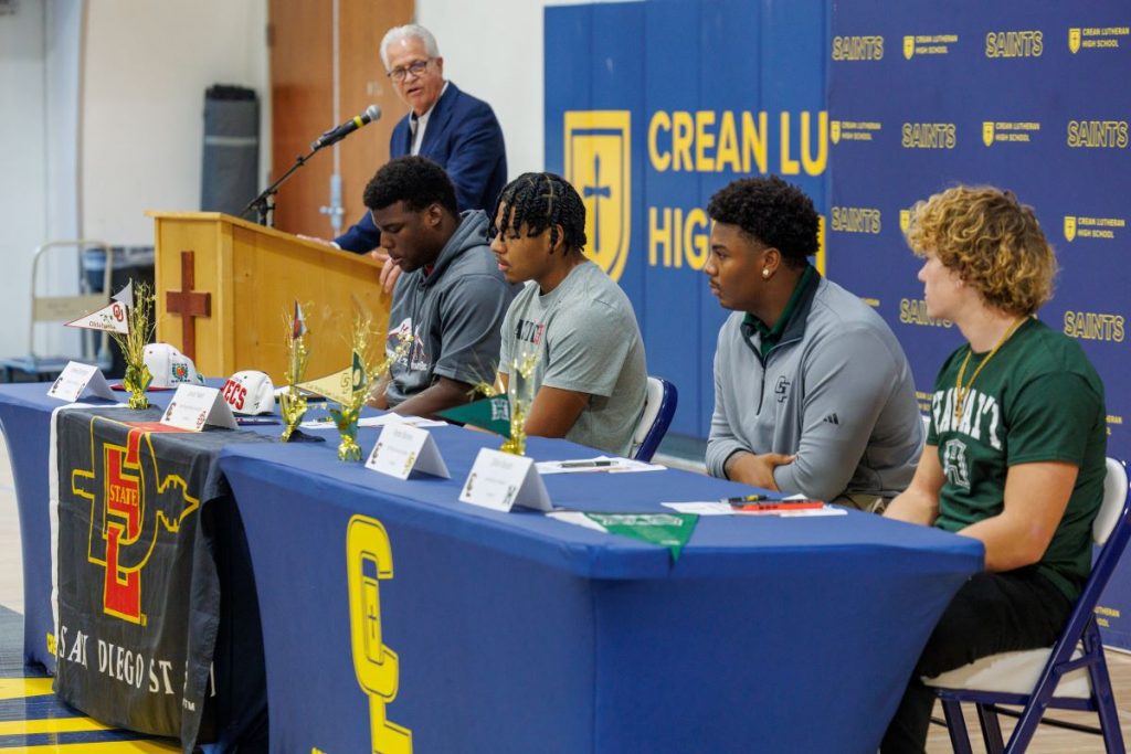 Four Crean Lutheran High School football players signed letters Wednesday to continue their athletic careers in college. The four were instrumental in leading the Saints to an undefeated regular season and Epsilon League title.