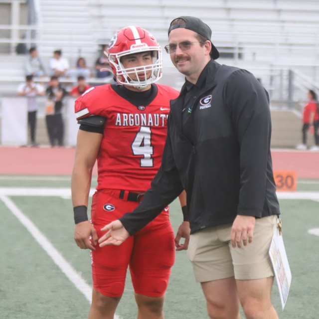 Garden Grove's Quentin Pacelli with Coach Matthew LemMon.