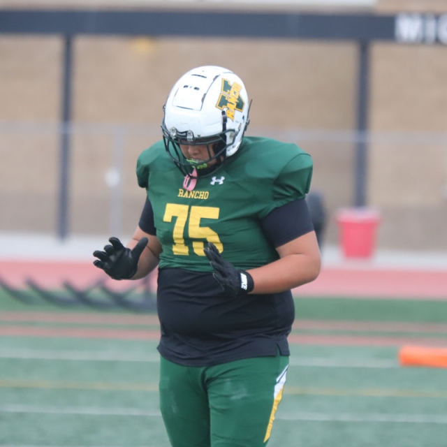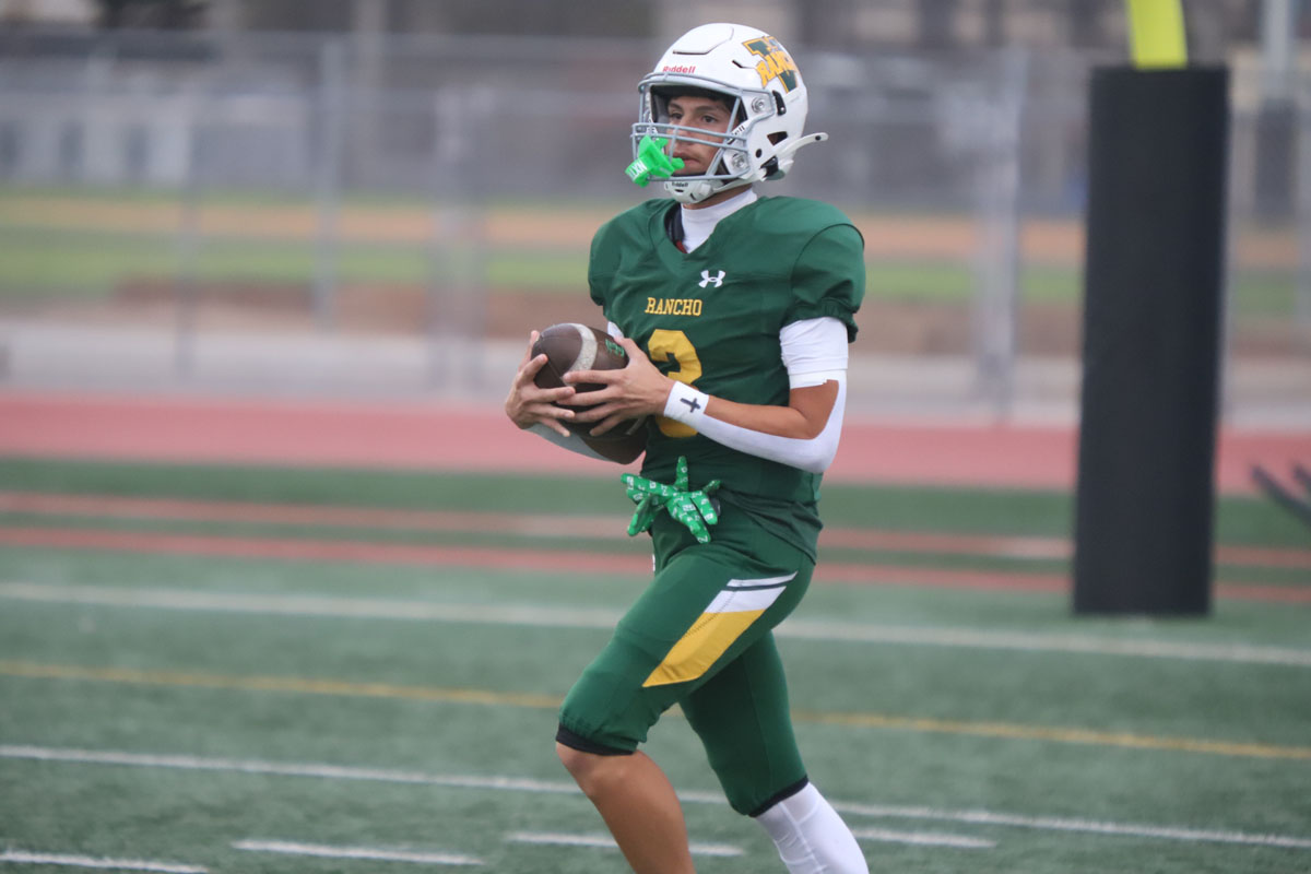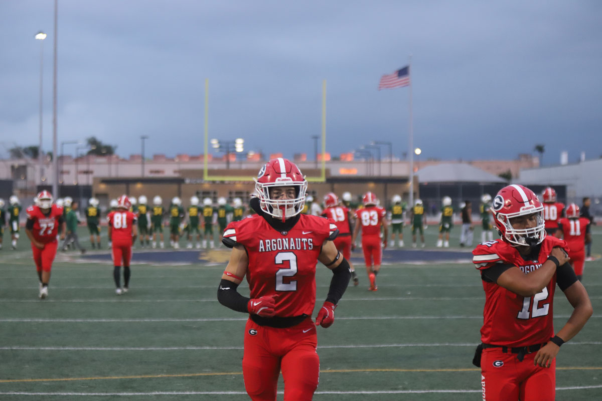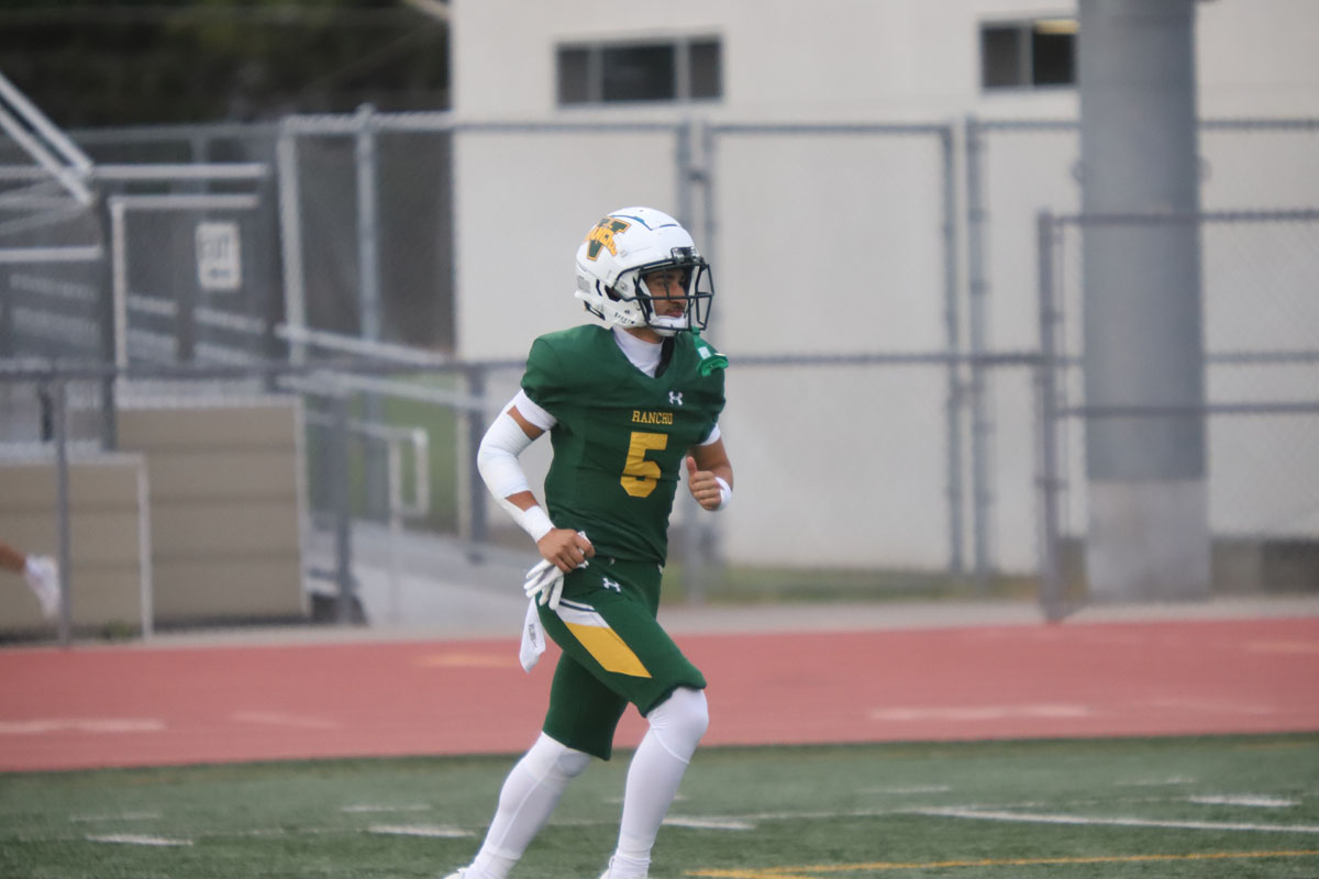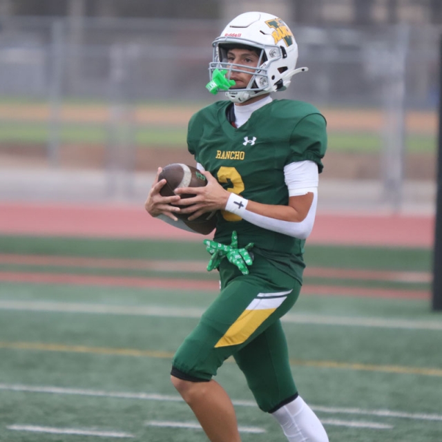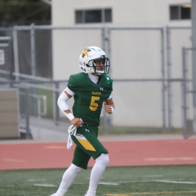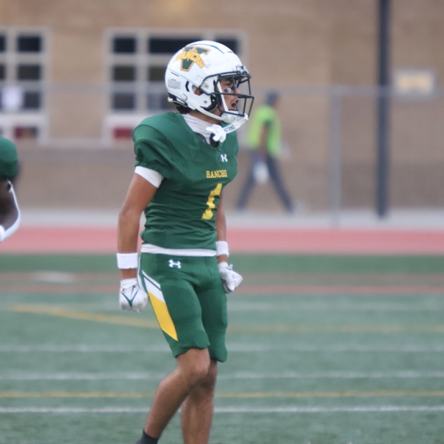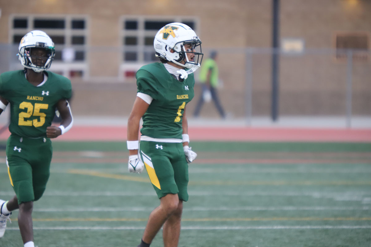 Aiden McCool (No. 4) and Keanan Navajo of Rancho Alamitos.