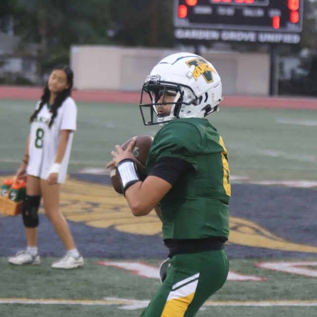 Garden Grove players, including No. 4 Quentin Pacelli, go through pre-game drills before Friday’s game with Rancho Alamitos. (PHOTOS: Fernando M. Donado, For OC Sports Zone).