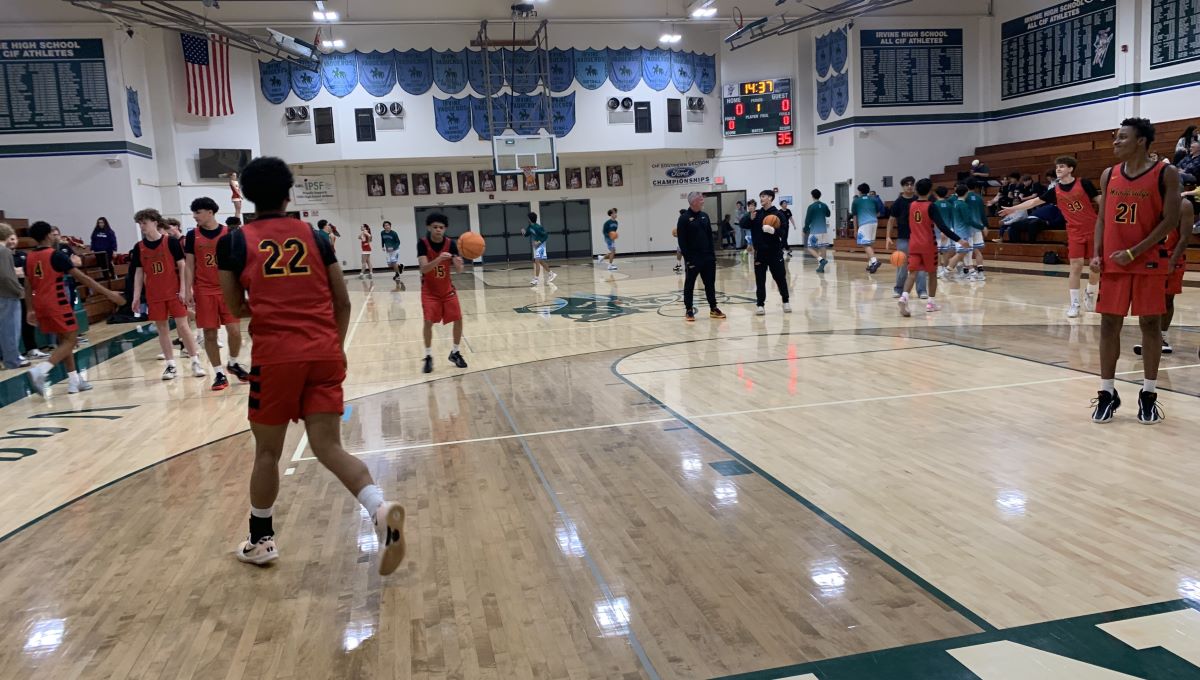 “Excellent way to start league,” said Irvine Coach Harry Meussner. “That’s a really tough opponent. Obviously, they’re missing Jaiden Sabino, who is a remarkable player and if he was healthy, arguably the MVP of this league, he’s that good and we wish him a speedy recovery but nonetheless, Woodbridge has guys and they’re really talented and the fact that we were able to stymie them a little bit tonight, it would have been nice if we could have made a few more buckets to not keep it so tight the whole game.