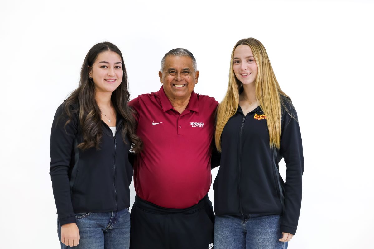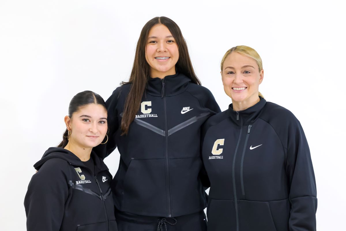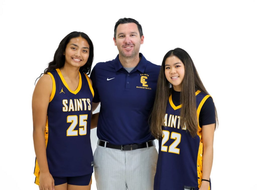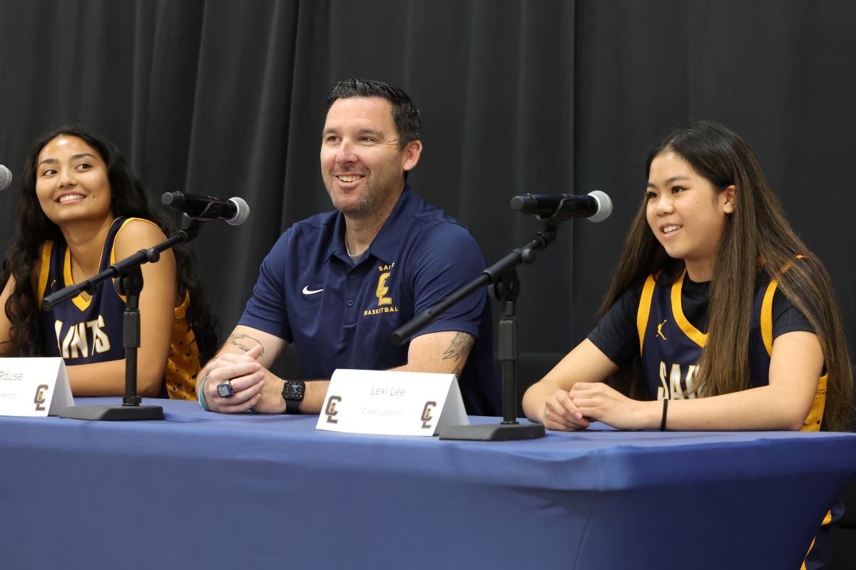 Crean Lutheran’s Crean Lutheran Elise Randolph, Coach Kyle Rouse and Lexi Lee at the OC Girls Basketball Media Day Tuesday. (Photos courtesy Crean Lutheran Shutterbugs, John Luciano).