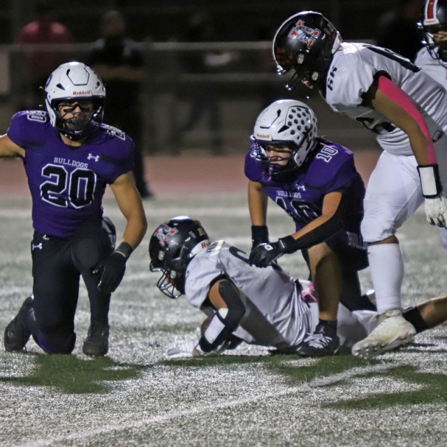 On Katella’s side, it was a tough showing for a team that was missing four of its five usual starters on the offensive line. Shut out for the second time of the season, nothing went right for Katella after Baltazar intercepted a Bulldog pass.