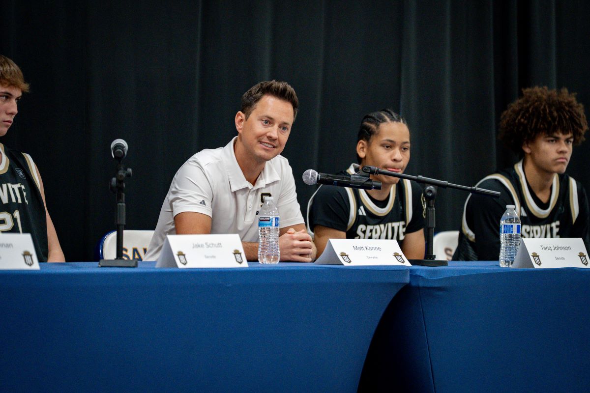 Media gathered Thursday at Crean Lutheran High School to hear 15 Orange County coaches talk about the 2025-26 high school boys basketball season during the second annual OC Boys Basketball Media Day.