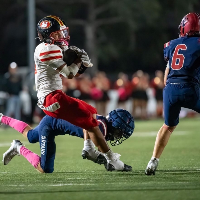 Segerstrom High School’s football team opened Kappa League play Friday night with a 27-14 road victory over St. Margaret’s.