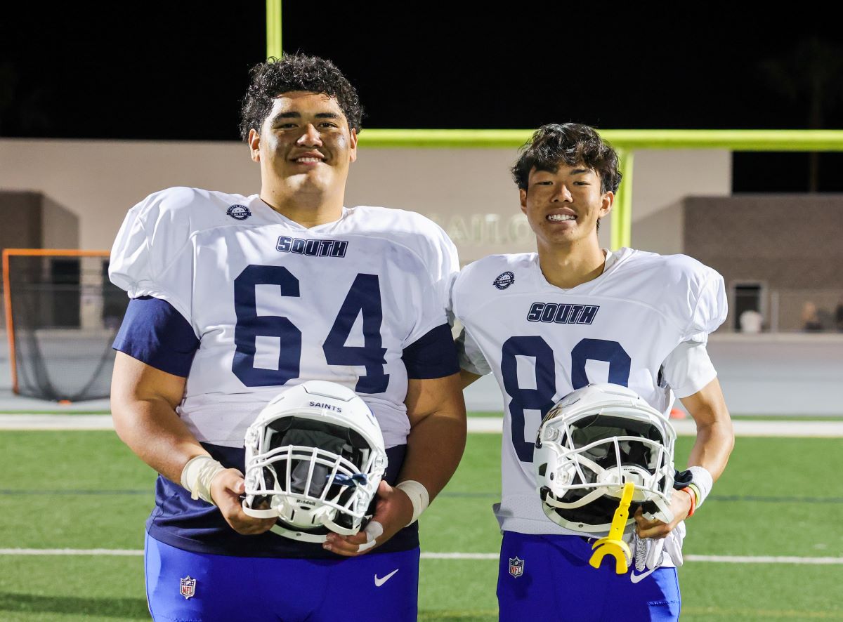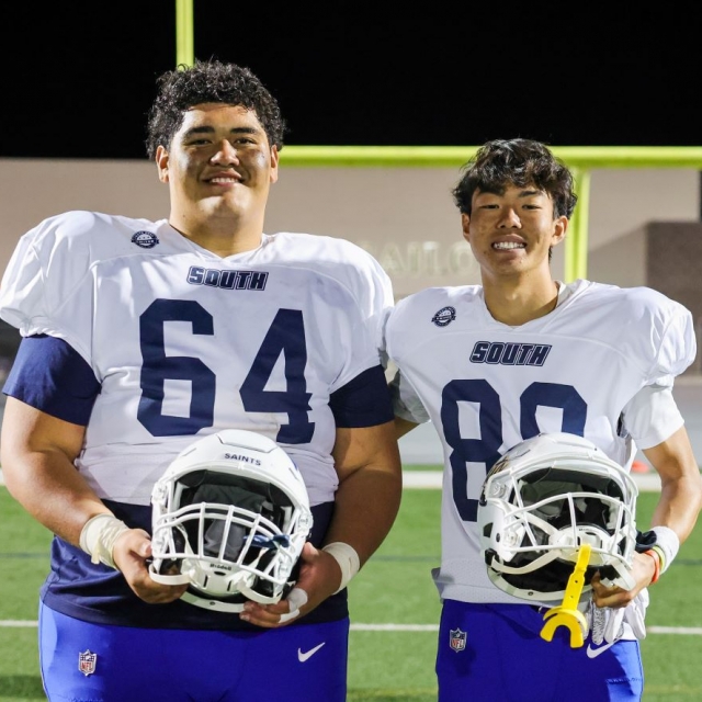 Crean Lutheran's Sione Kaihau (left) and Taiga Takada were among the South all-stars.