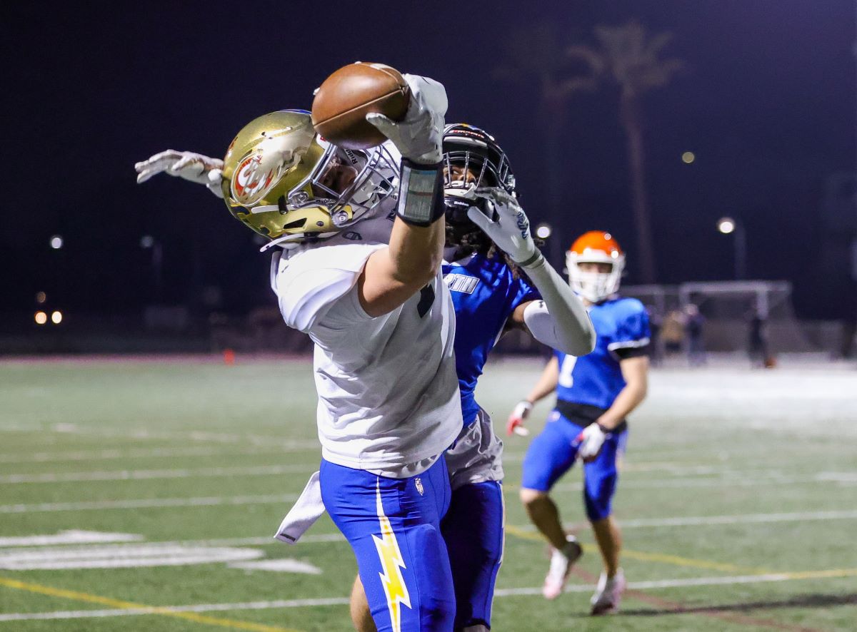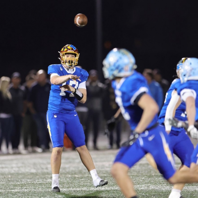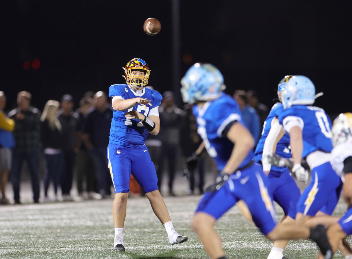 North quarterback Travis Frazier (Esperanza) tosses a pass upfield to Samuel Jackett (El Modena).