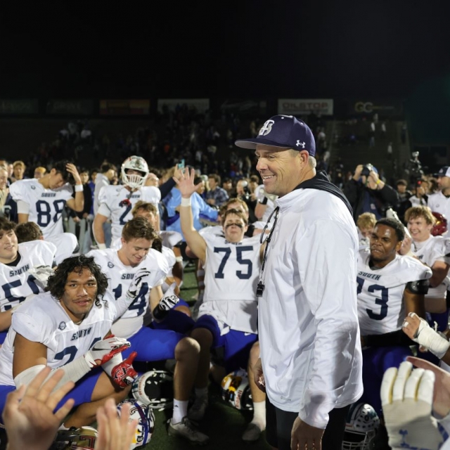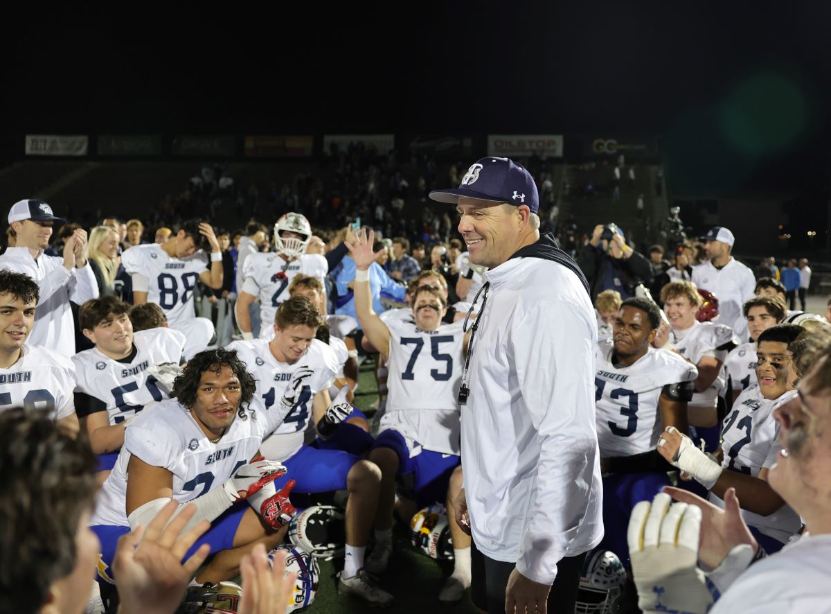 South Coach Mark Nolan (Trabuco Hills) addresses his winning team after the game.
