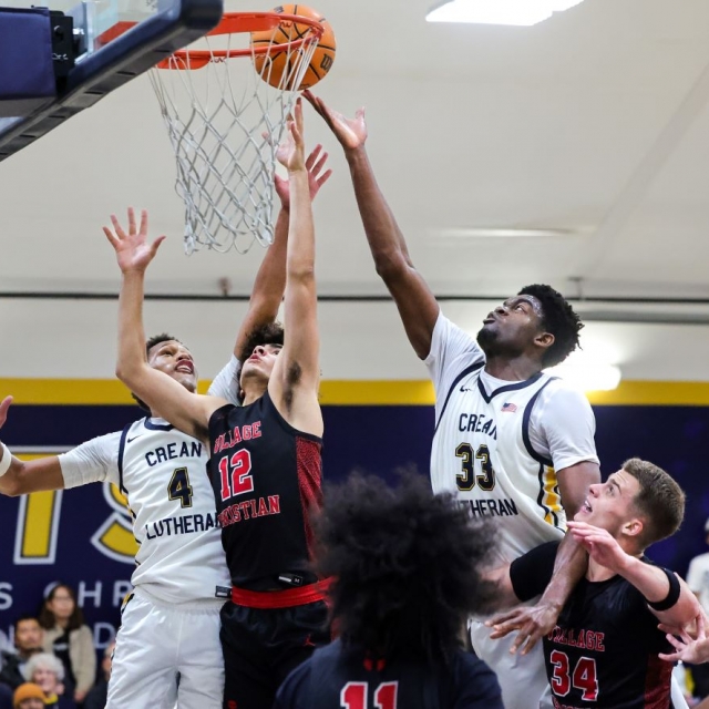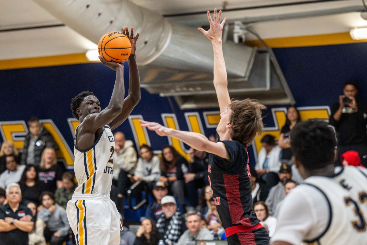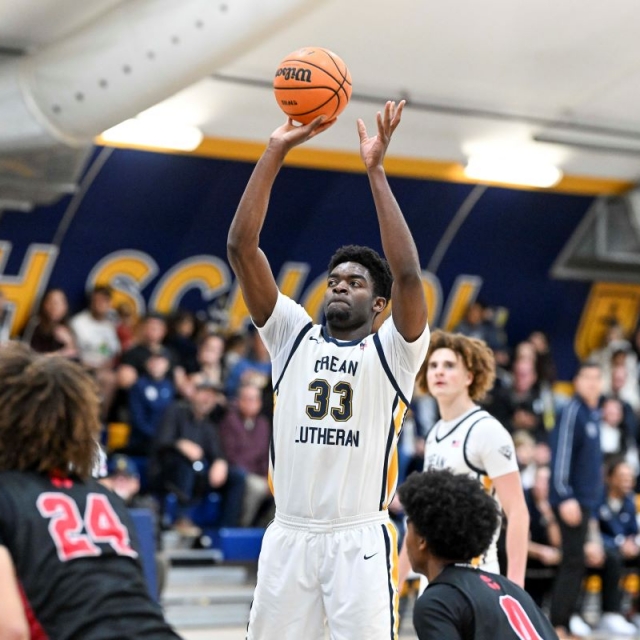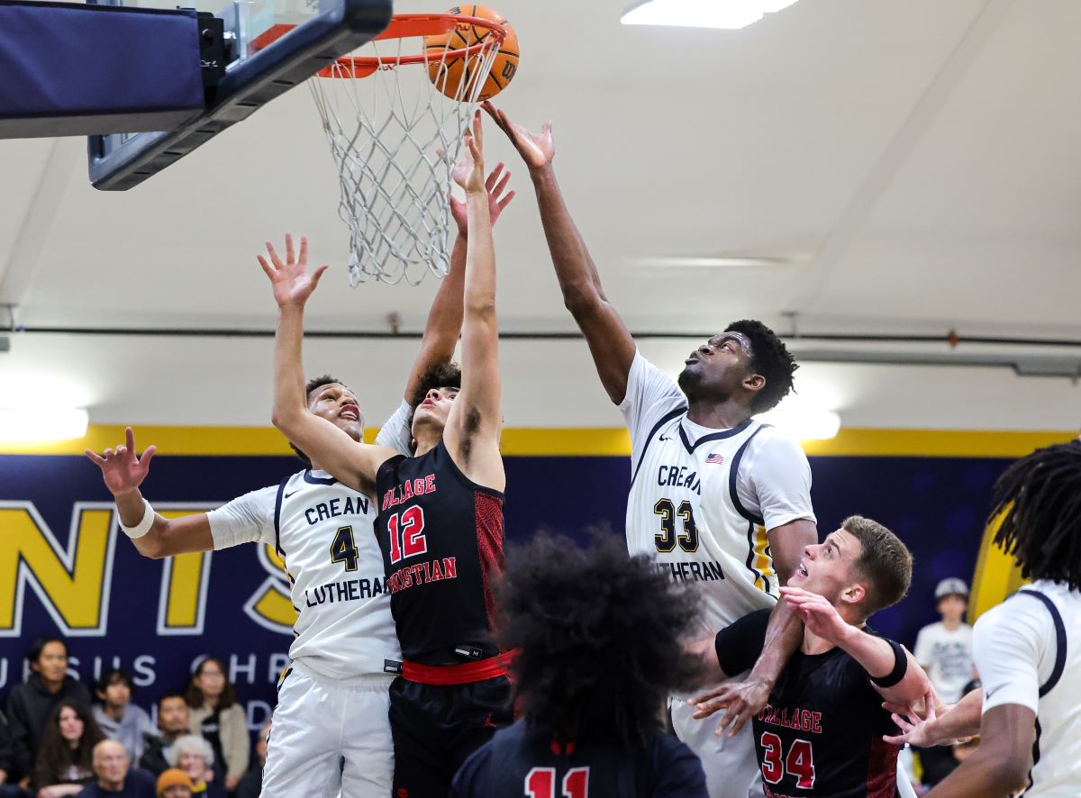 Crean Lutheran’s starting five (Caden Jones, Caplan, Nicholas Giarrusso, Jacob Majok and Mpoyi) then took over every aspect of the game in the second quarter and outscored Village Christian 24-8 in the second period and built a commanding 47-23 lead at halftime.
