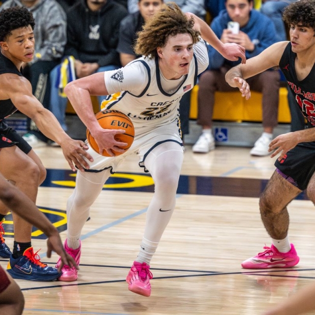 “We played these guys in Hawaii earlier in the season, so we knew what we needed to do,” said Giarrusso, who scored 12 points in the game and had a strong game on the boards and helped disrupt the Village Christian offense with his aggressive defensive play throughout the game. “We wanted to take Conroy out of his game and we did that. The crowd gave us a lot of energy, and we knew we were the better team.”