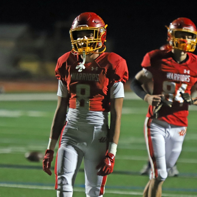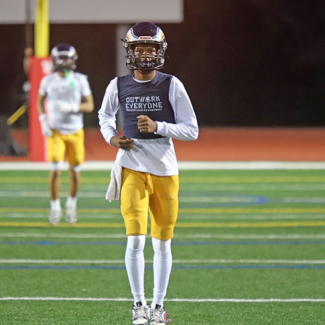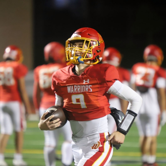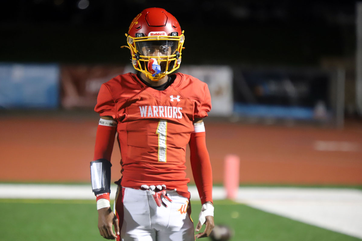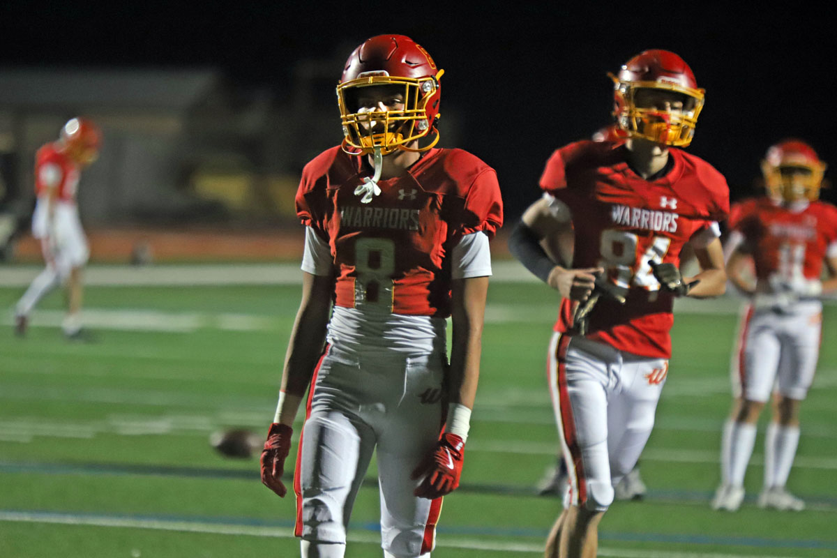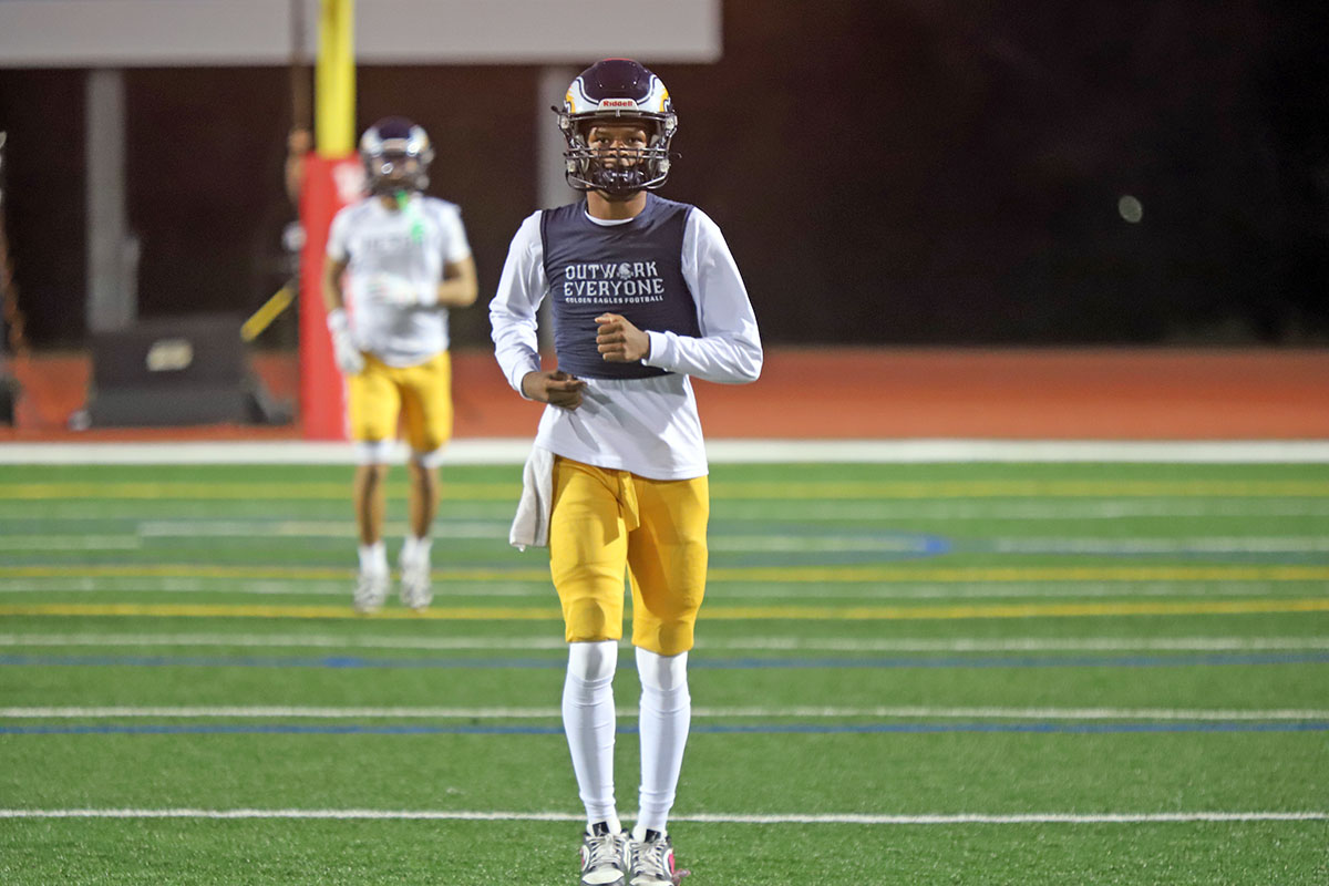 Woodbridge Coach Connor McBride and the Warriors go through warmups before Friday night’s CIF Division 13 playoff game against Desert Hot Springs at University. (PHOTOS: Fernando M. Donado, For OC Sports Zone).