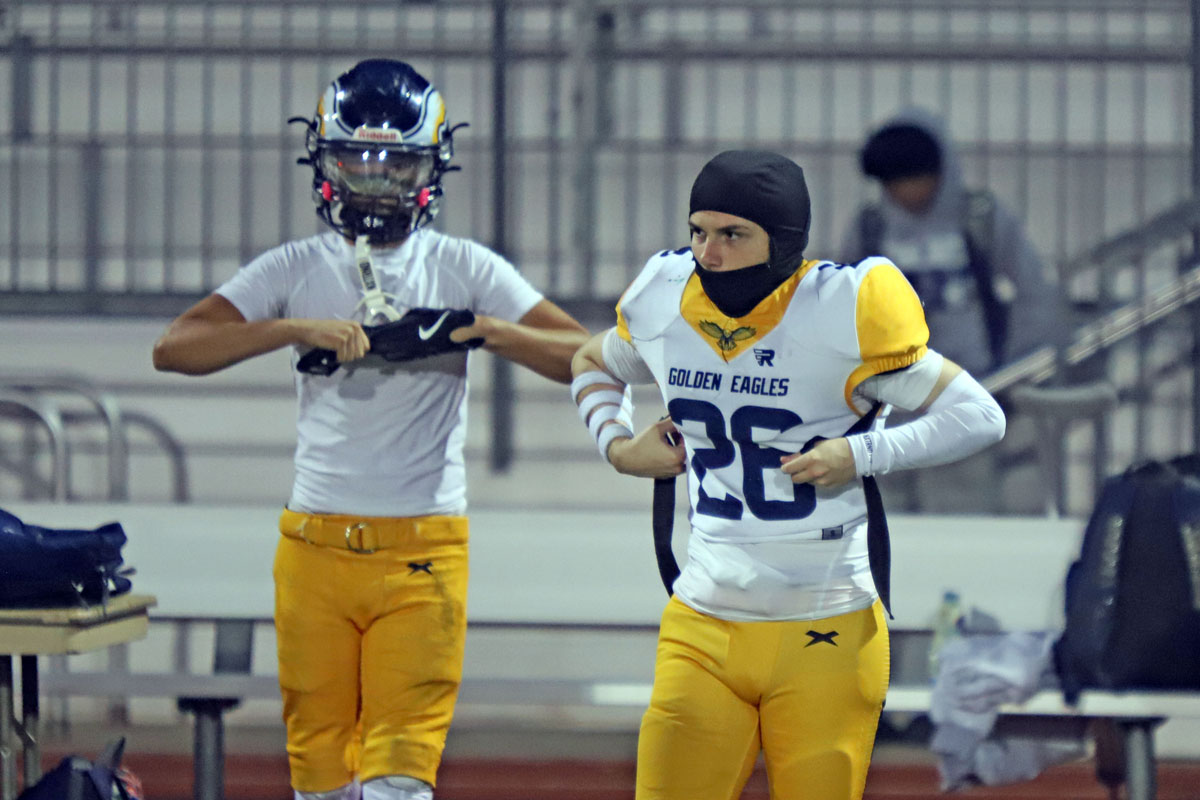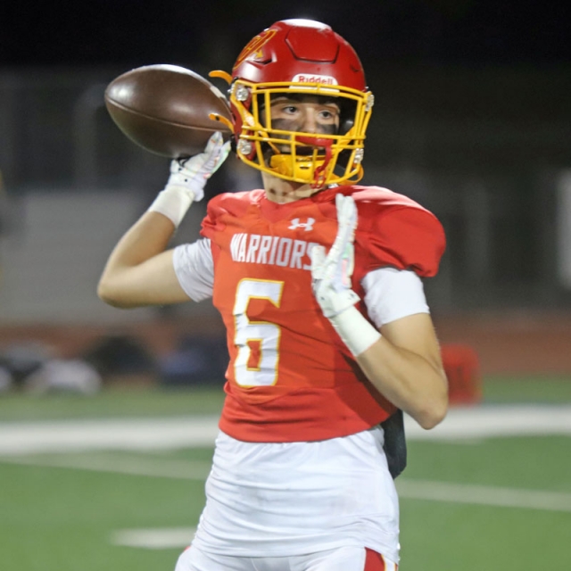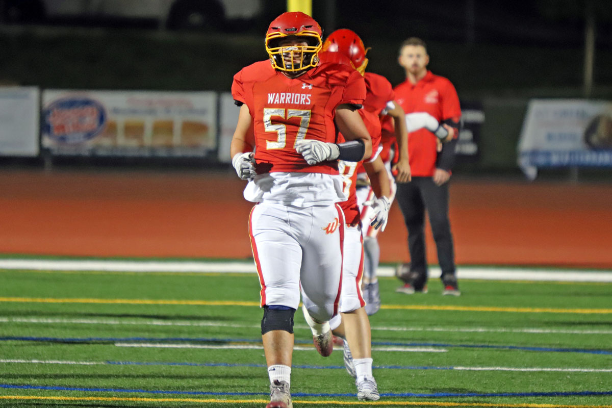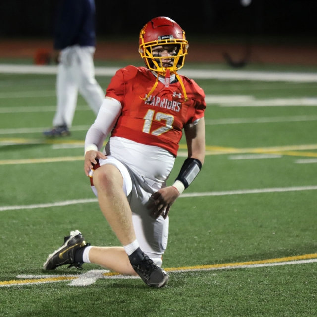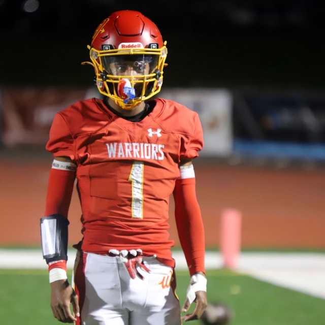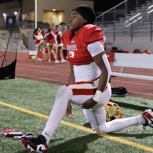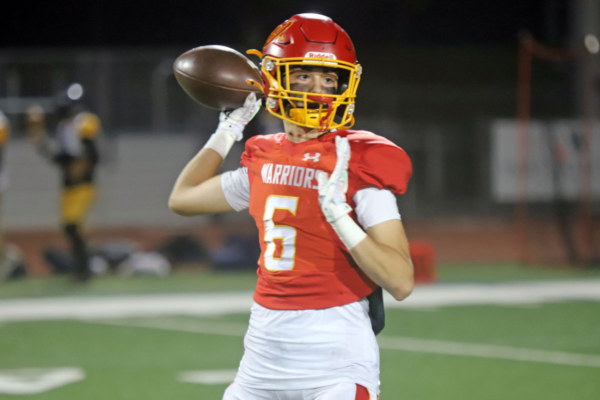 Woodbridge Coach Connor McBride and the Warriors go through warmups before Friday night’s CIF Division 13 playoff game against Desert Hot Springs at University. (PHOTOS: Fernando M. Donado, For OC Sports Zone).