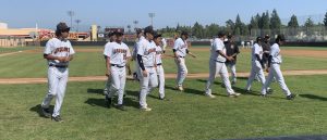 Placentia Punishers coach Brandon Smith talks to his players before Friday’s game. (Photo courtesy Placentia Pony Baseball).