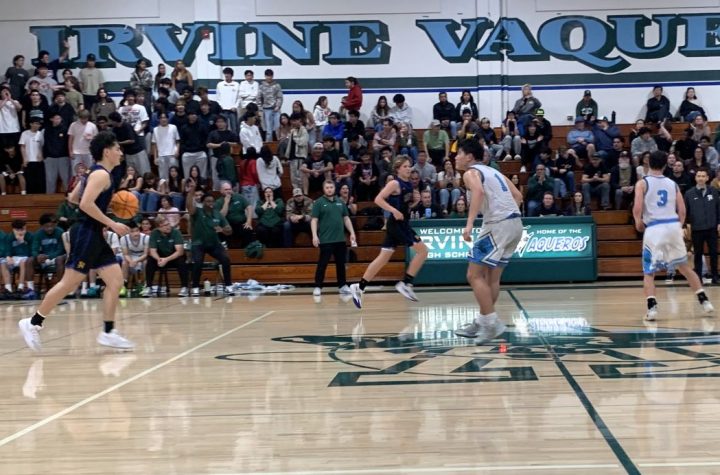 Irvine players head to the court to celebrate PCL tournament win over Sage Hill...