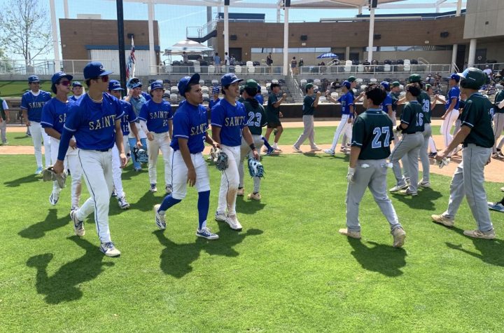San Dimas players celebrate after Saturday’s victory over Irvine. (PHOTO: Tim Burt, OC Sports...