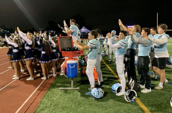 University players and cheerleaders celebrate with students after Friday night’s victory over Glenn. (PHOTOS:...