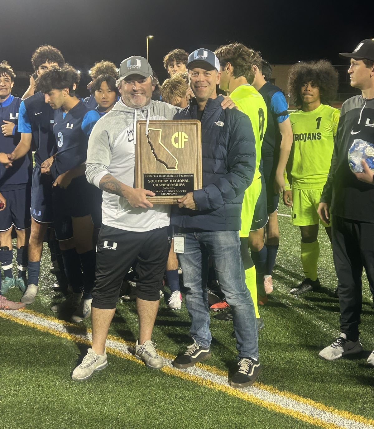 The University Trojans captured the Division IV CIF Regional Boys Soccer Championship with a 2-0 home victory over the Granite Hills Cougars Saturday evening. No. 1-seeded Uni defeated No. 2-seed Granite Hills for the second time in the playoffs.